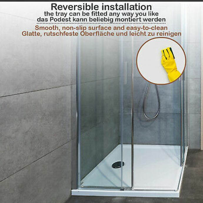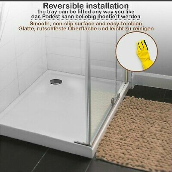 Elegantna tuš kada s ravnim profilom. Reverzibilna instalacija - postolje se može postaviti bilo gdje MAKS. KAPACITET: Ograničenje opterećenja za ovu tuš kadu ograničeno je na 200 kg. "