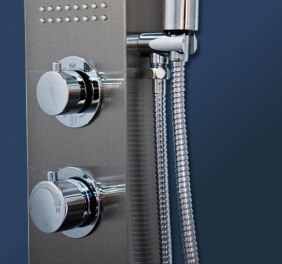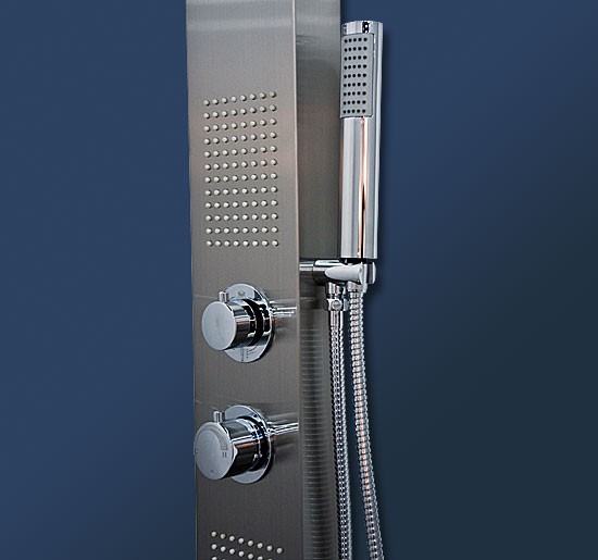 Ima regulator za masažu, tuš iznad i ručni tuš;