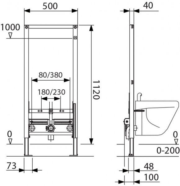 Duofix Basic ugradbena konzola za bide ima pocinčanu potporu s visinom podesivom do 20 cm. Visina elementa iznosi 112 cm.