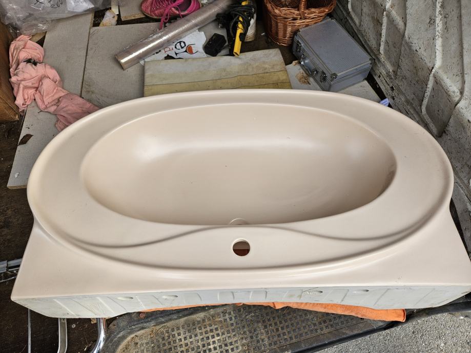 Prodajem novi umivaonik, dimenzije 100x60. Boja umivaonika se vidi na slici. Zadnja slika najbolje pokazuje boju. Svijetlo krem boja. Ima više komada istih.
