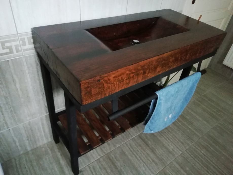 Umivaonik od stoljetne hrastovine na željeznoj konstrukciji. Najkvalitetniji materijali garantiraju kvalitetu i ljepotu. Dimenzije š 99 v 85 d 50cm. Moguća izrada po narudžbi