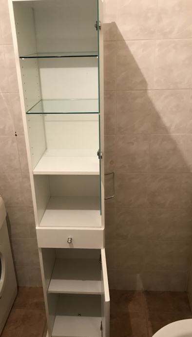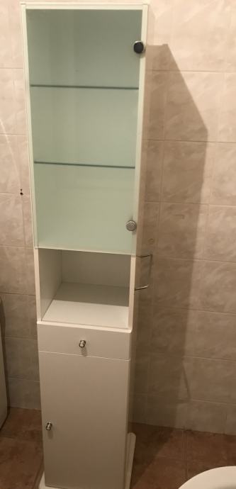 Povoljno prodajem lijepi, novi , visoki, uski, bijeli ormarić za kupaonu s mliječnim staklom , dimenzija 35x33x187, za 350 kuna.