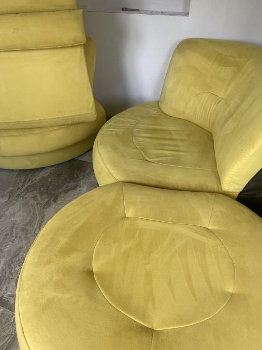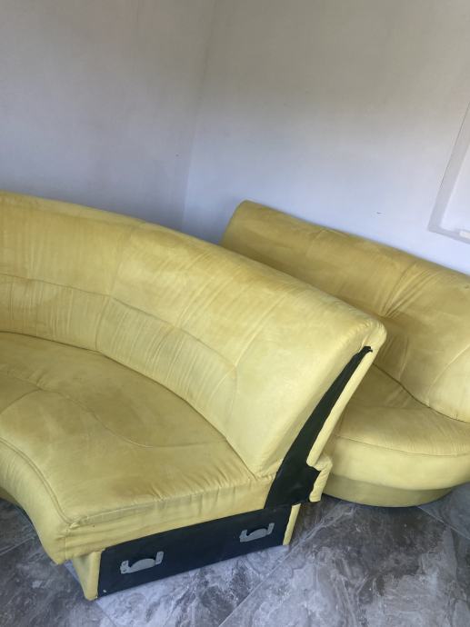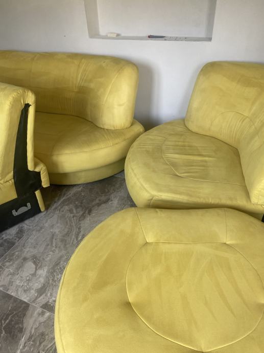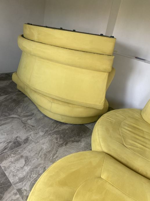 Prodaje se ogromna kratko korištena garnitura. Garnitura je prevelika za prostor. Svijetlo žute boje s tabureom.Izuzetno povoljno plačena pet puta više nego navedena cijena.
