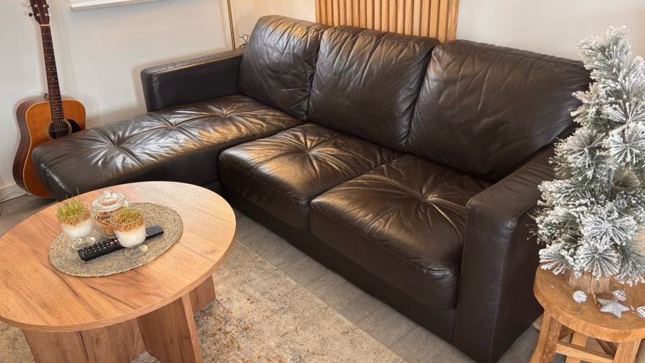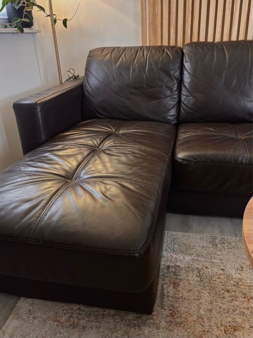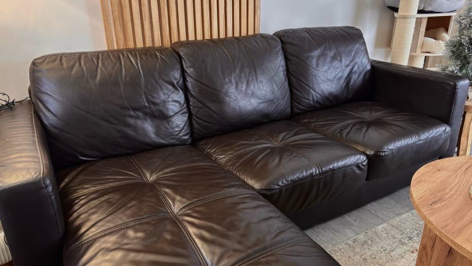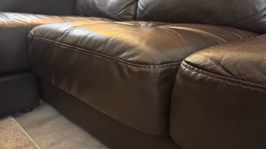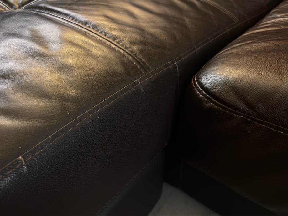 Prodajem manju kutnu kožnu garnituru, korištenu, ali jako dobro očuvanu, ima sitna oštećenja prikazana na fotografijama.
