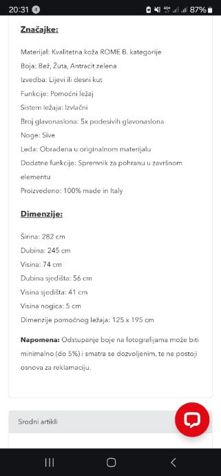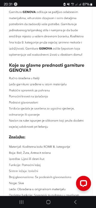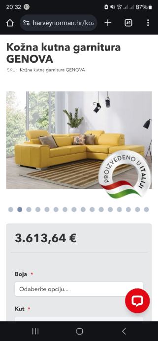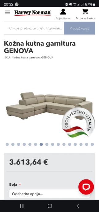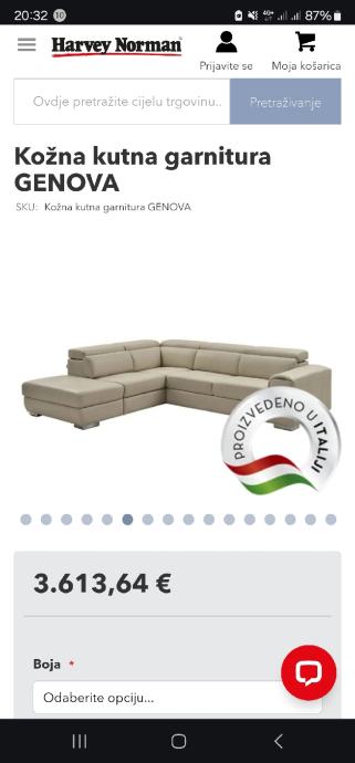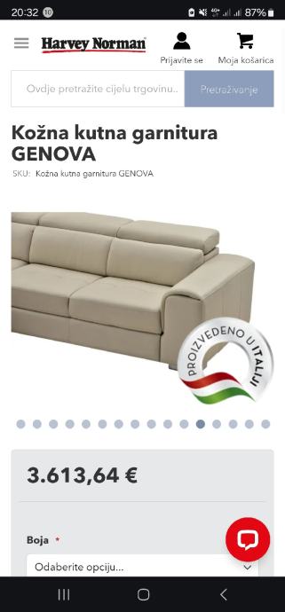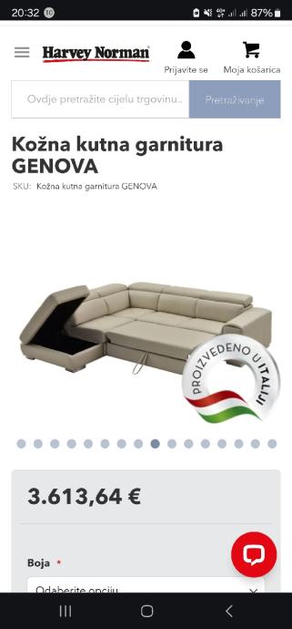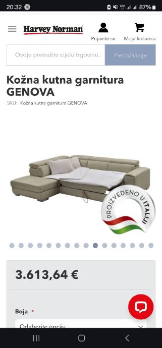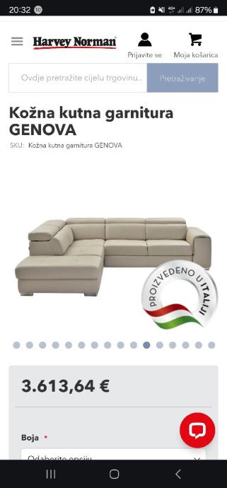 Prodajem navedenu kožnu kutnu garnituru Genova kupljenu u prosincu 2023 u Harvey Norman-u.