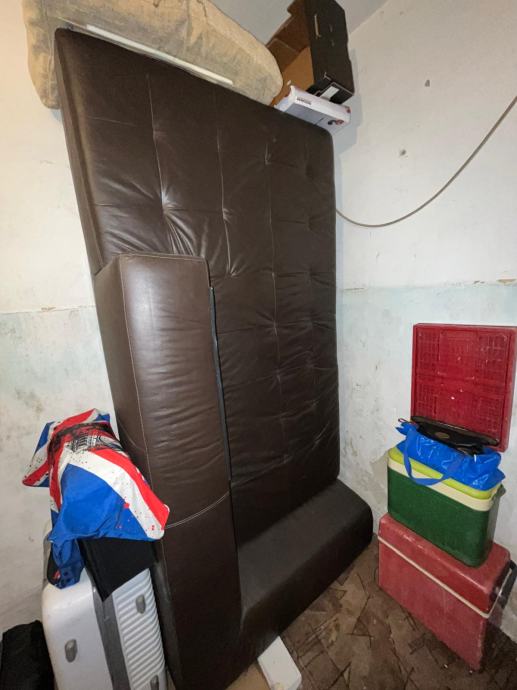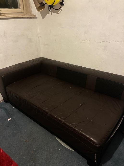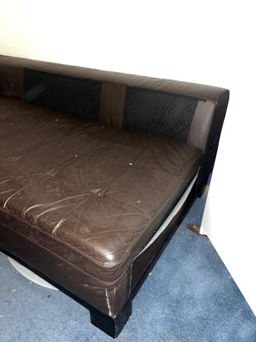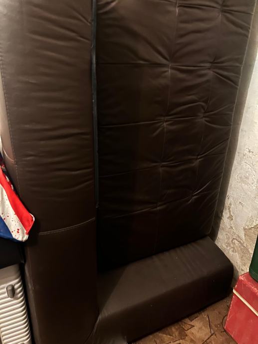 Kožna kutna rabljena garnitura. U dobrom stanju samo ju treba oprati. Uz nju dolaze i veliki kožni jastuci.
