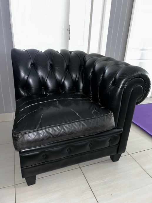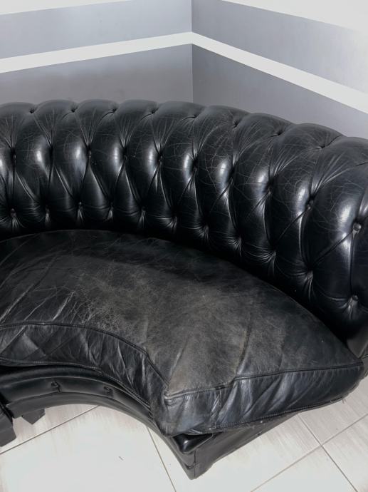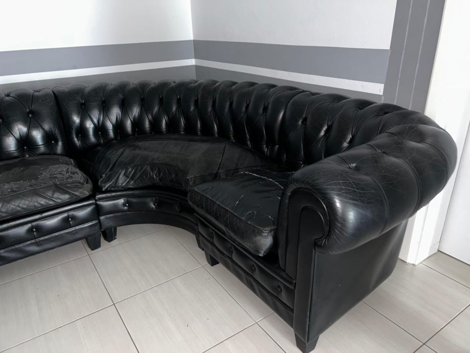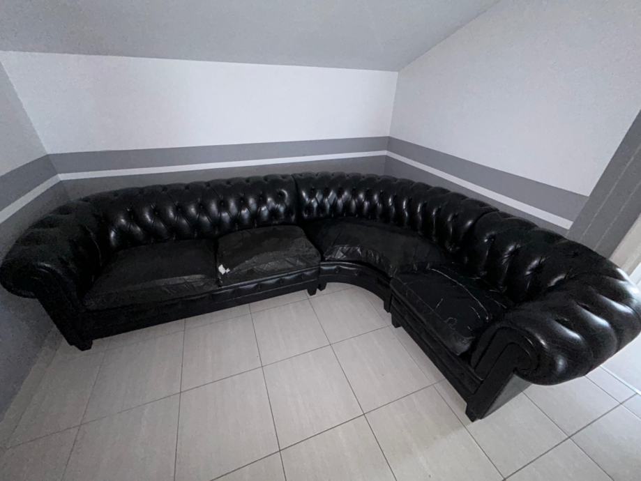 Na prodaju elegantna kutna garnitura vrhunskog proizvođača Rolf Benz, izrađena od prave kože u klasičnom Chesterfield stilu.