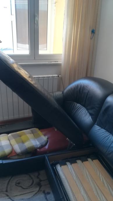 Prodajem kožnu garnituru u jako dobrom stanju dimenzije za sjedenje 260/60/170 a kad se razvuče 190/130. +kutija za posteljinu (jako sačuvana) nova je bila 14.000.kn.