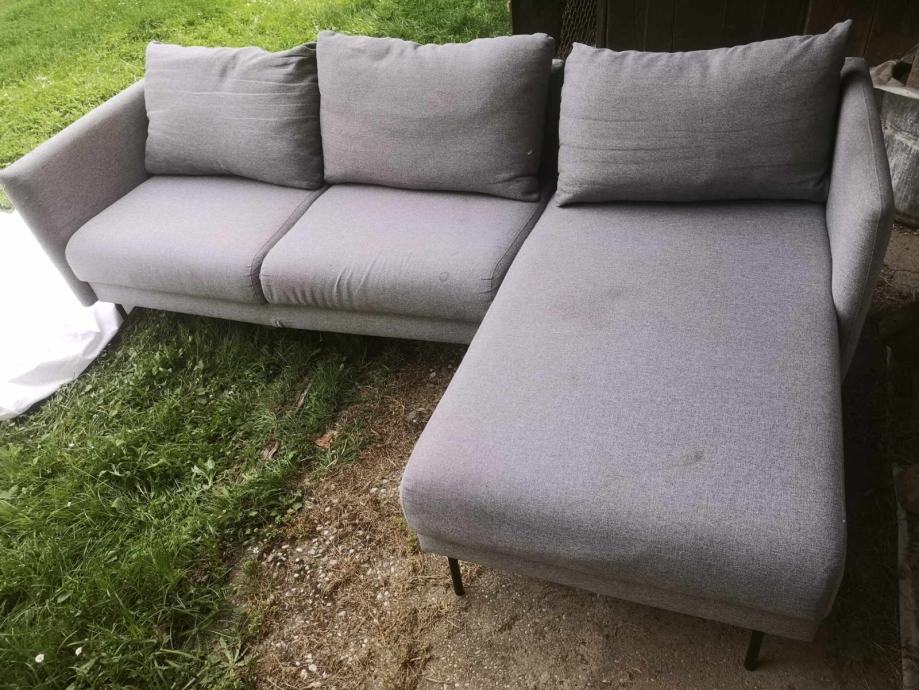 Prodajem kutnu garnituru dimenzije: 230 x 143, na srednjem dijelu ima tvorničku manu gdje nema nogice i počne se savijati ali se može podbaciti nešto ispod pa se neće savijati.