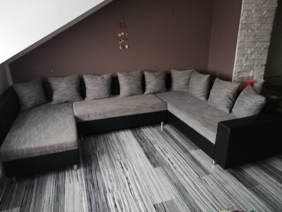 Kutna garnitura 230x300x160, razvlači se u ležaj, ima spremnik ispod, očuvano. Cijena 2000kn