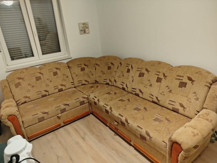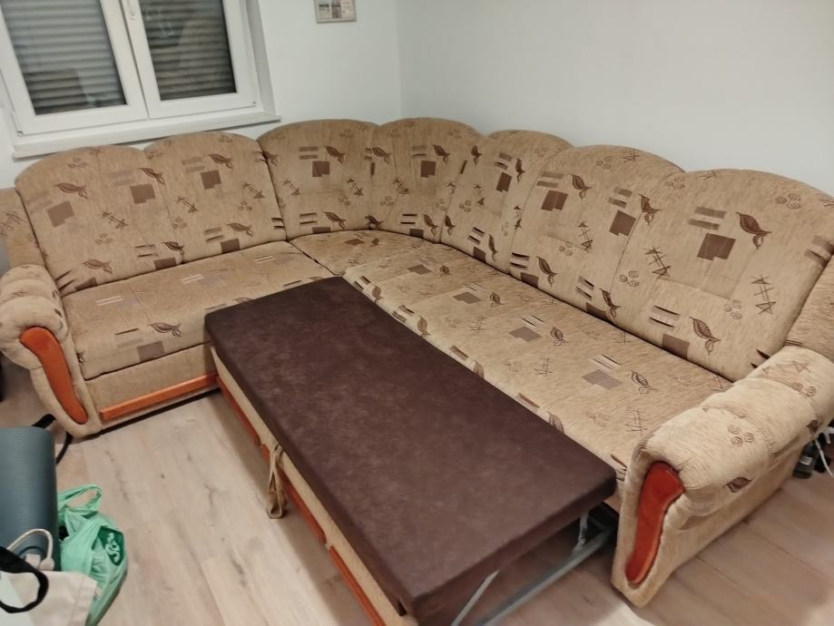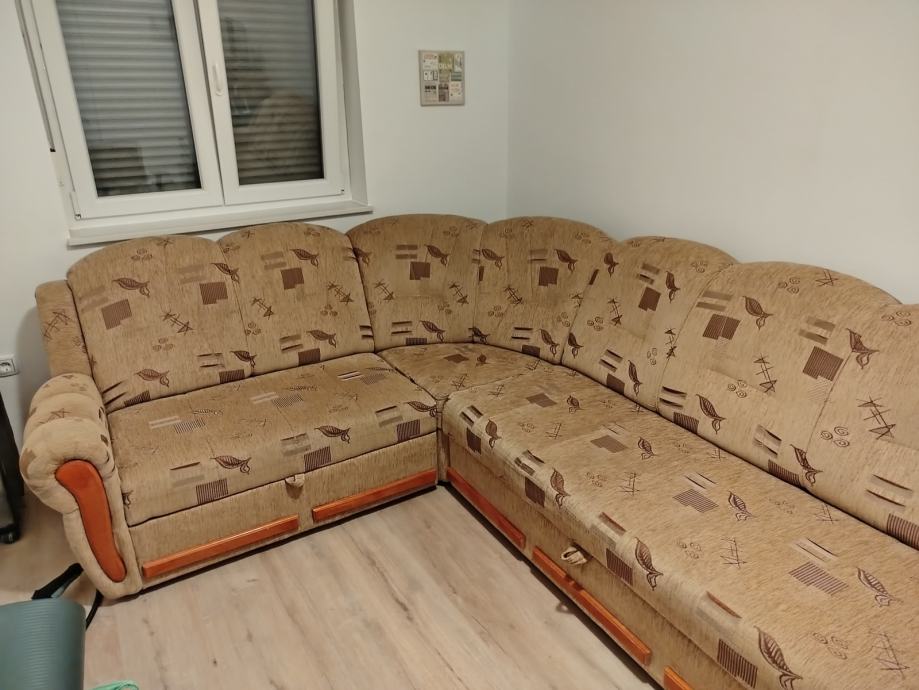 Pula, prodajem kutnu garnituru nekoristenu, retro look, mogucnosti razvlacenja za spavanje, spremnik za posteljinu, inace u odlicnom stanju , moze se okrenuti u obrnuti smjer jer dolazi u pet dijelova..Razlog prodaje je iz prilozenog jer mi je prevelika