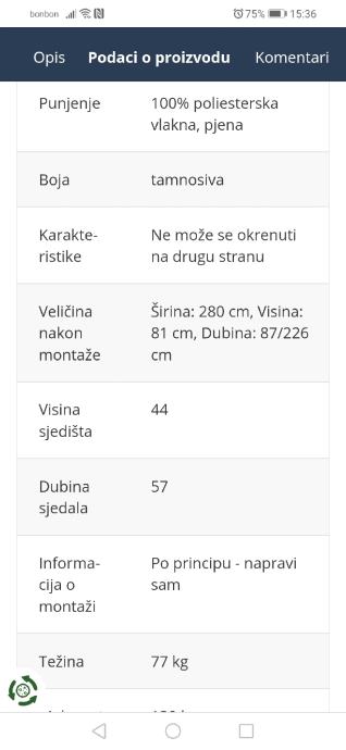 Prodajem kutnu garnituru kupljenu u Jysk-u, u odličnom stanju. Boja je tamno siva, kut lijevi.