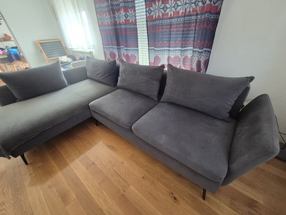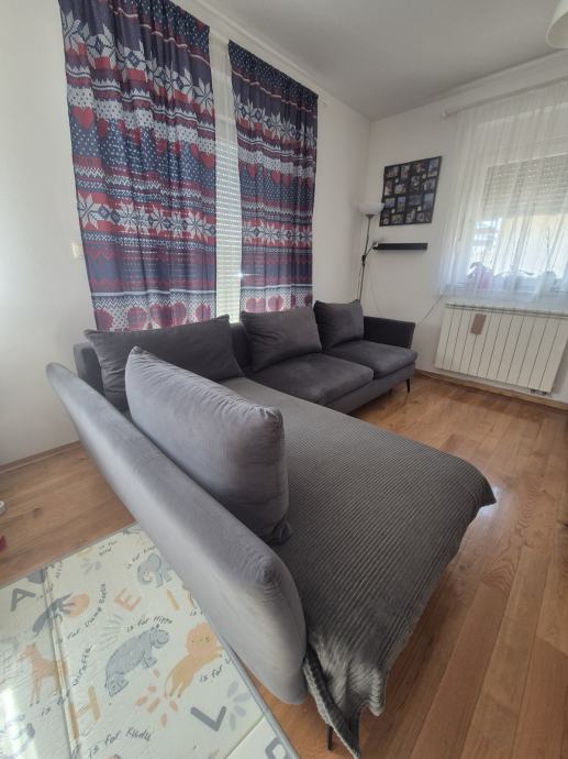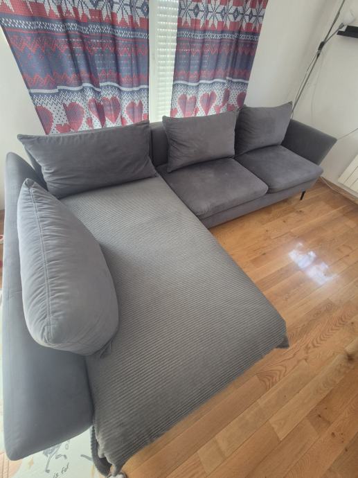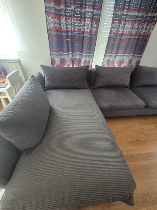 Ima prostor za odlaganje i može se razvući ležaj. Jastučnice se mogu skinuti i oprati u mašini. Cijena je zbog oštećenja koji se vidi na slici.