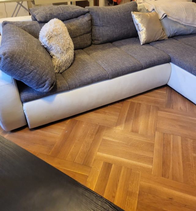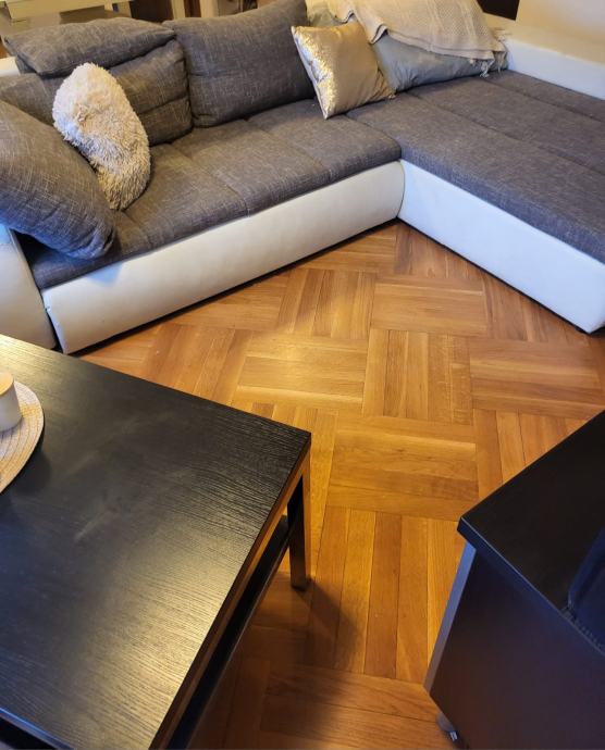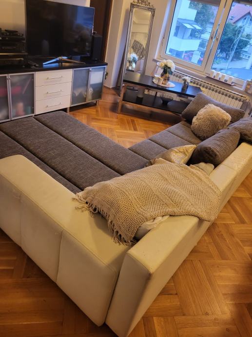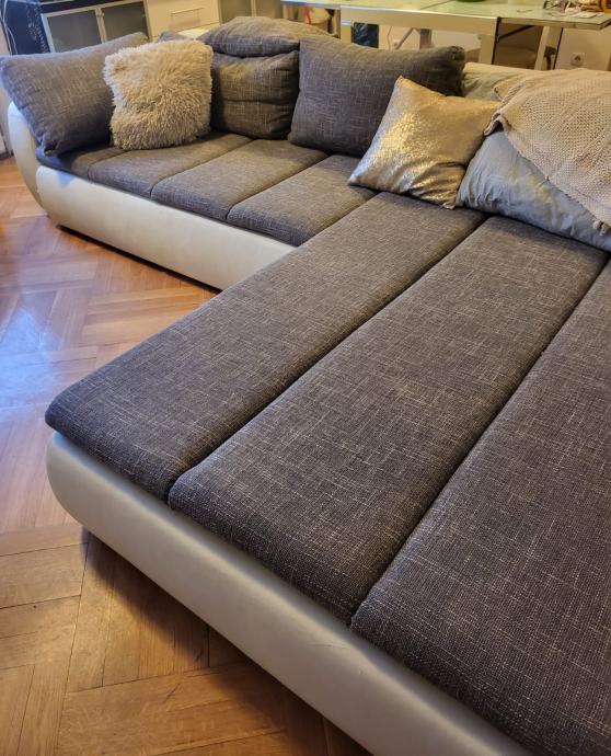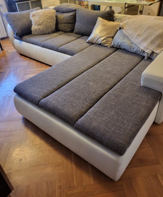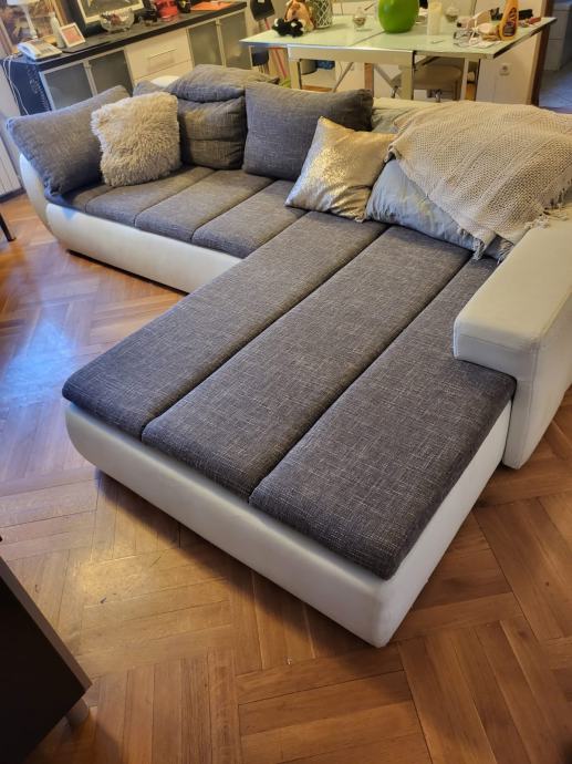 Prodajem udobnu i vrlo prostranu kutnu garnituru s dodatnim ležajem na razvlačenje. Garnitura je dimenzija 290 cm (dužina), 97 cm (dubina), i 54 cm (visina). Damski ležaj je dužine 190 cm, a kada se kauč razvuče, dobivate dodatni prostor za spavanje za dvije osobe.