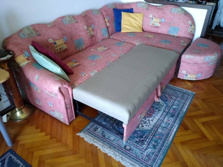 Malo korištena garnitura dim. 2,50x1,60 mogućnost pretvaranja u ležaj + spremište za posteljinu.