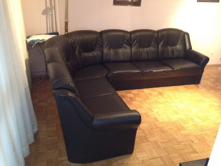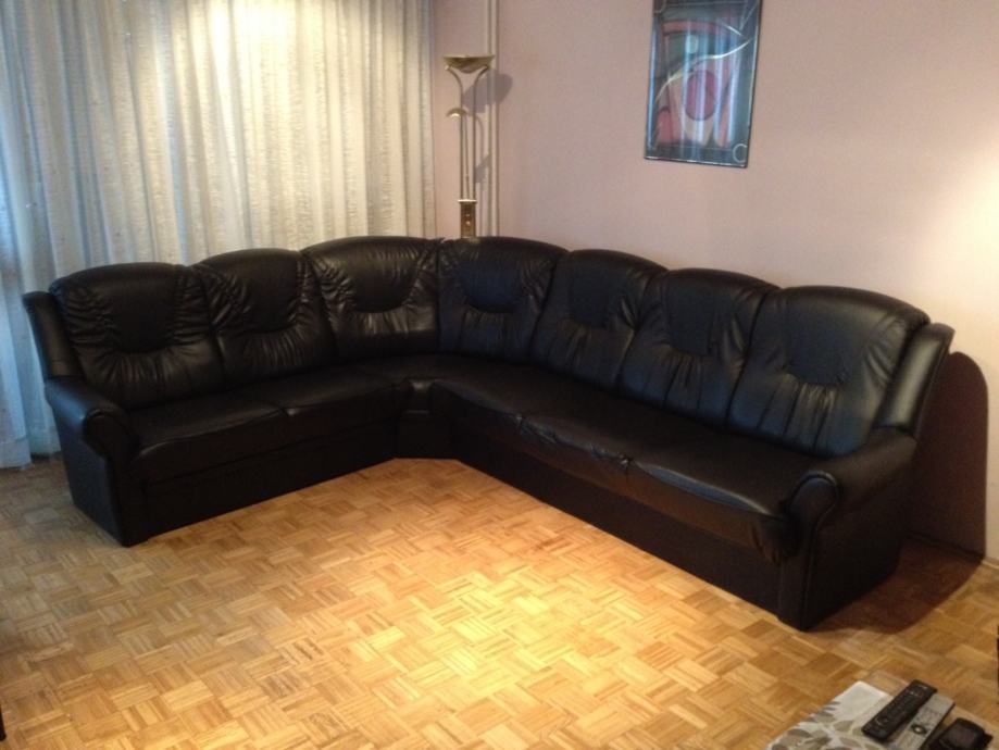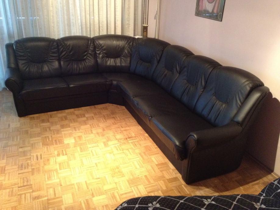 Prodajem kutnu garnituru od eko kože crne boje, dimenzija 290x230 cm.