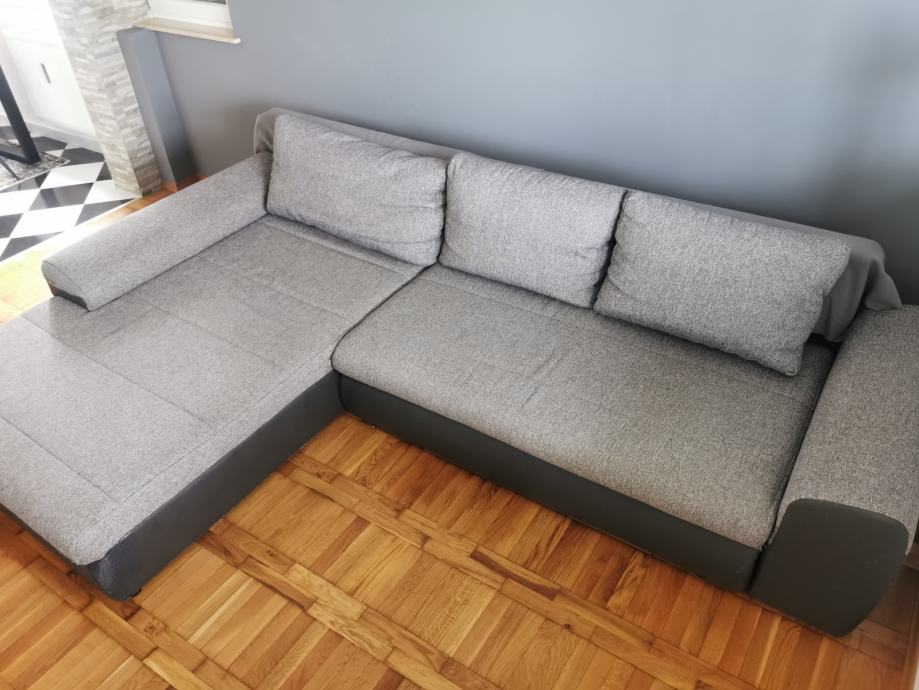 Prodajemo kutnu garnituru, većih dimenzija, dužina 3 m, damski ležaj, na izvlačenje.
