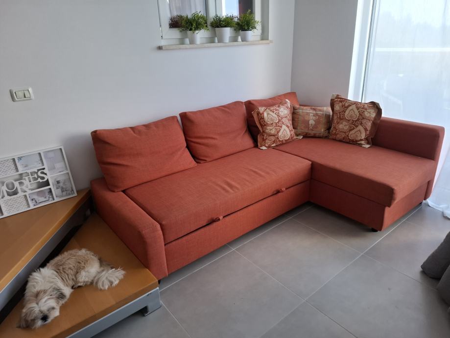PRODAJEM PRAKTIČNO NOVU KUTNU GARNITURU IKEA FRIHETEM SA 3 DEKORATIVNA DODATNA JASTUKA.
