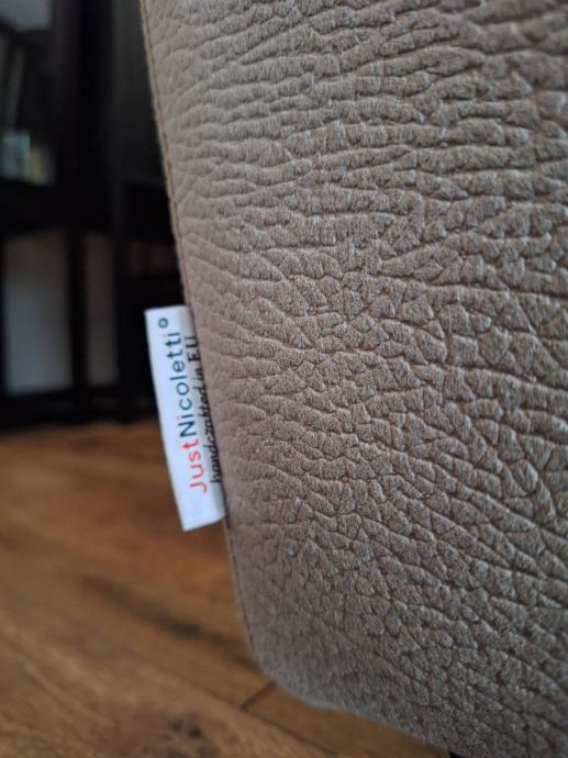 Prodaje se kvalitetna kutna garnitura, talijanskog proizvođača Just Nicoletti SARA, kupljena u Harvey Norman. Materijal vrlo kvalitetan i zahvalan, nešto između brušene kože i platna.