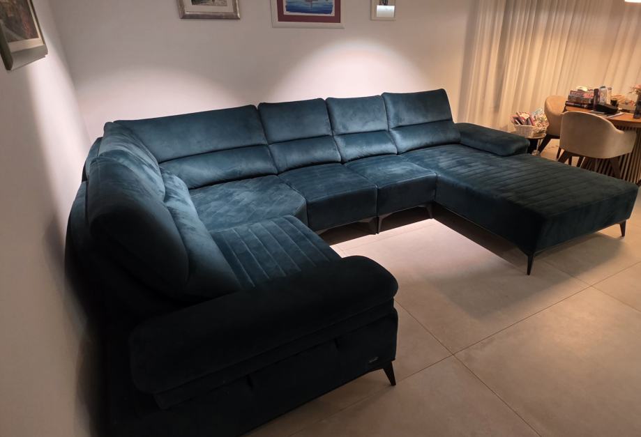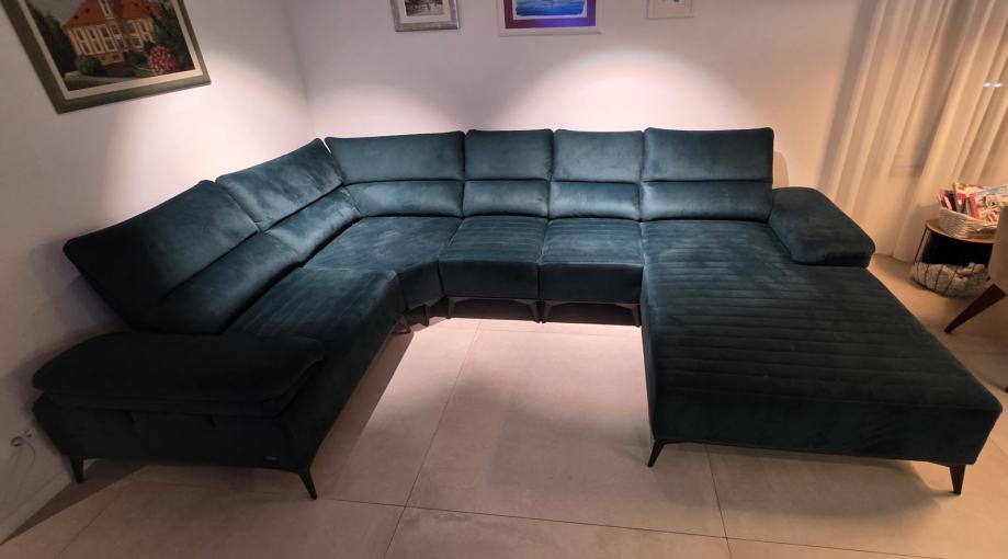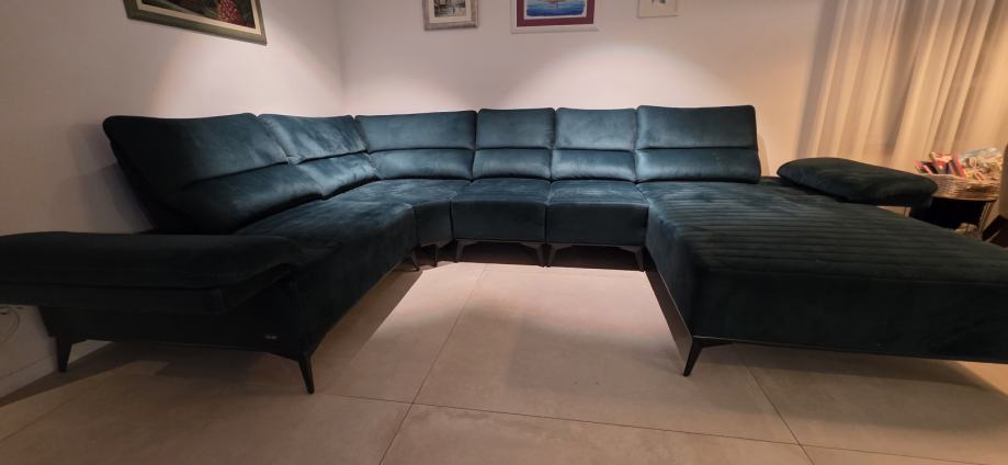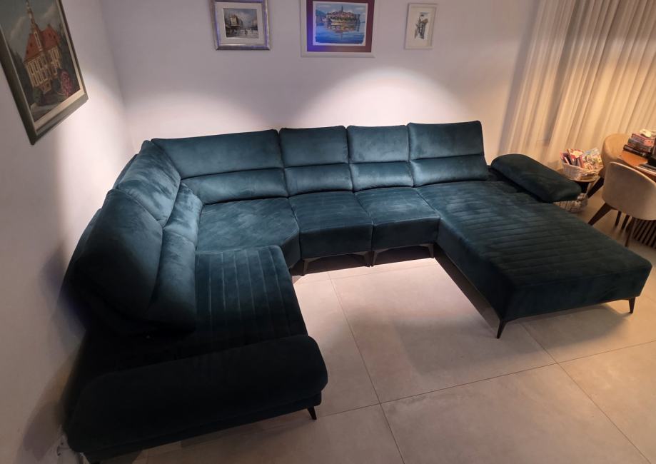 Prodajem kutnu garnituru KALEA, kupljena prije 2 godine (račun dajem kupcu). Garnitura je kao nova, nema oštećenja niti tragova korištenja. Dimezije su: d 360, š 245, v 45. Damski ležaj: d 213, š 115. Svi nasloni uključujući i bočne, mogu se raširiti ćime garnitura postaje još veća. Trenutno je na željeznim nogicama visine 16 cm, međutim u paketu sa garniturom dobijete i niže plastične nogice (pogodno ako volite niže sjedenje ili ako imate parket, zbog manje mogućnosti oštećenja poda).