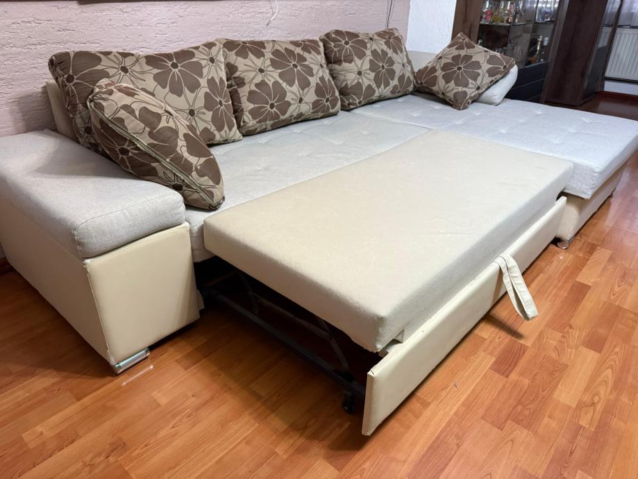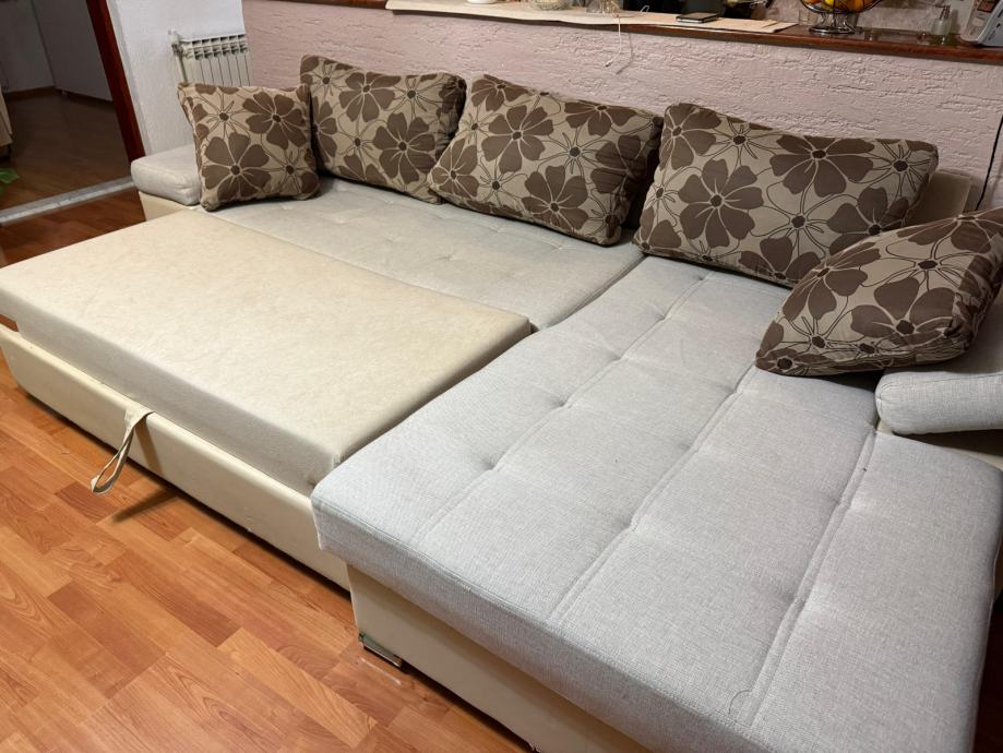 Prodajem rabljenu kutnu garnituru s ležajem, dimenzije 270x170 cm, desna.