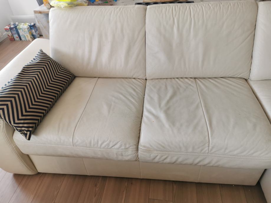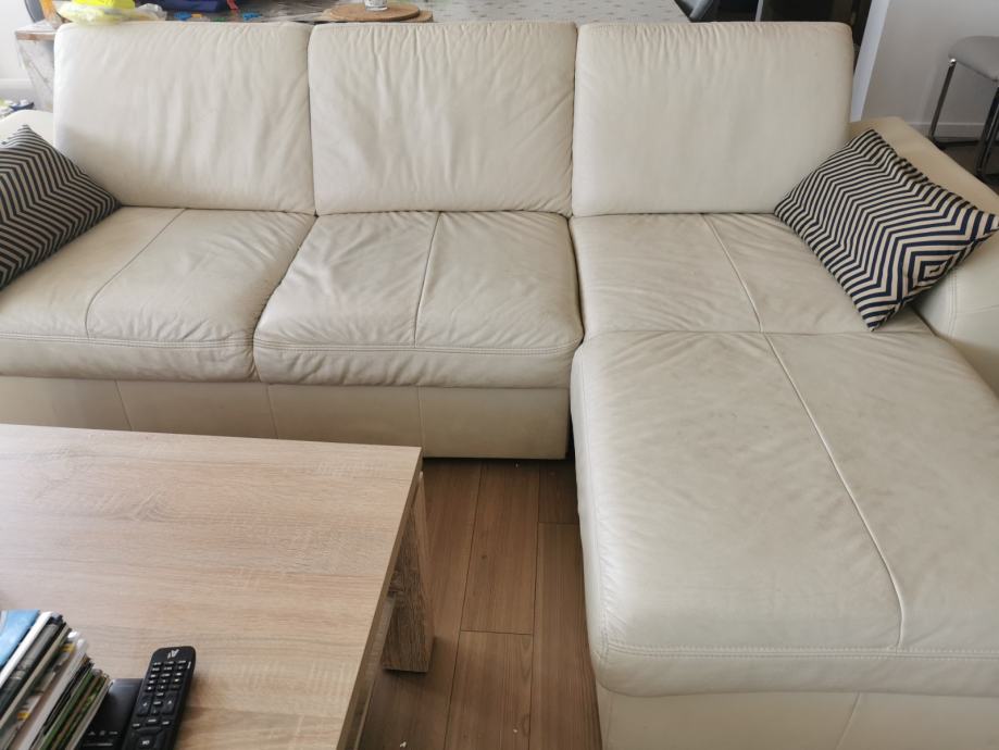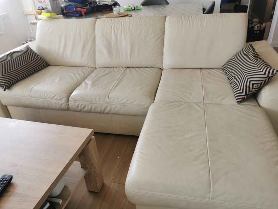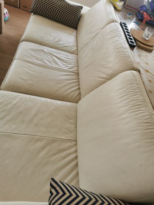 Kožna garnitura, dobro očuvana sa ležajem za razvlačenje i spremištem.