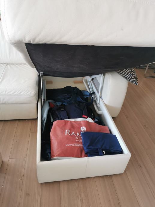 Kutna garnitura sa ležajem na izvlačenje i spremnikom, prava koža
