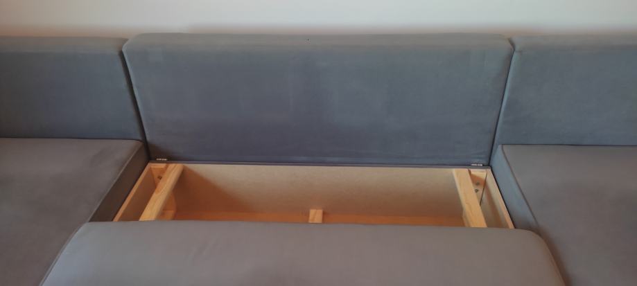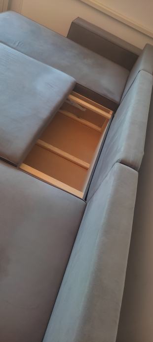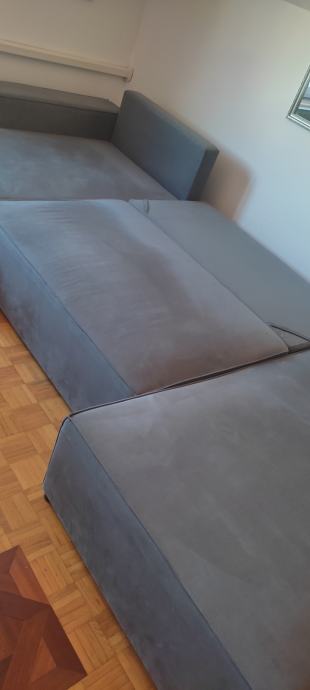 Prodajem kutnu garnituru s ležajem, kupljena prije godinu dana. Bez oštećenja i tragova korištenja. Lagana za montažu.