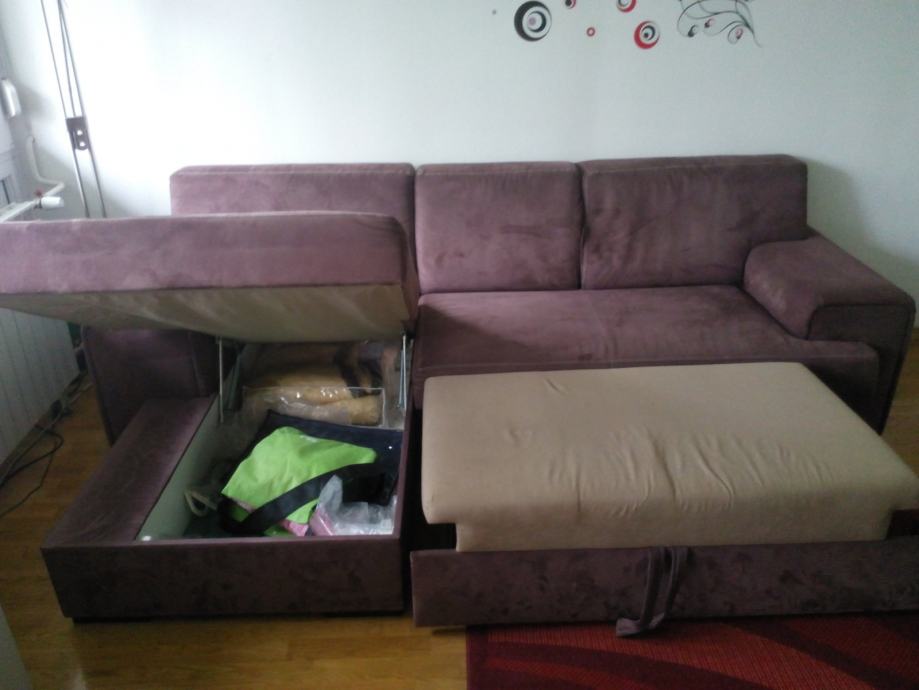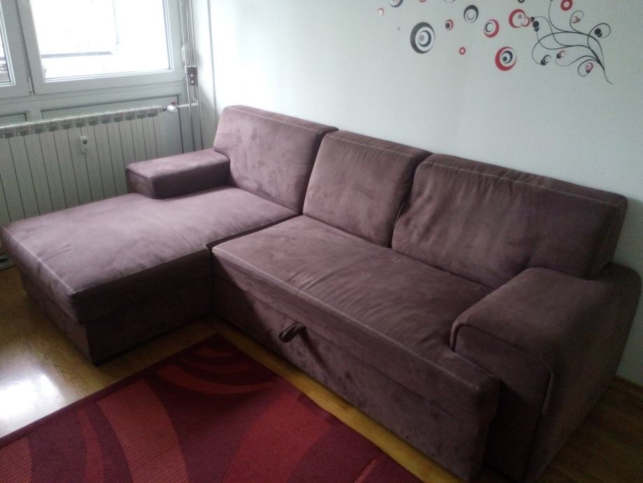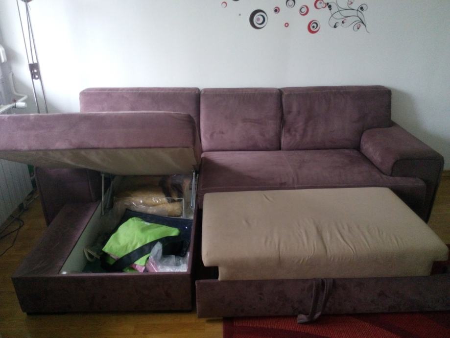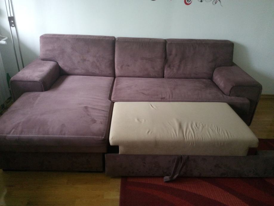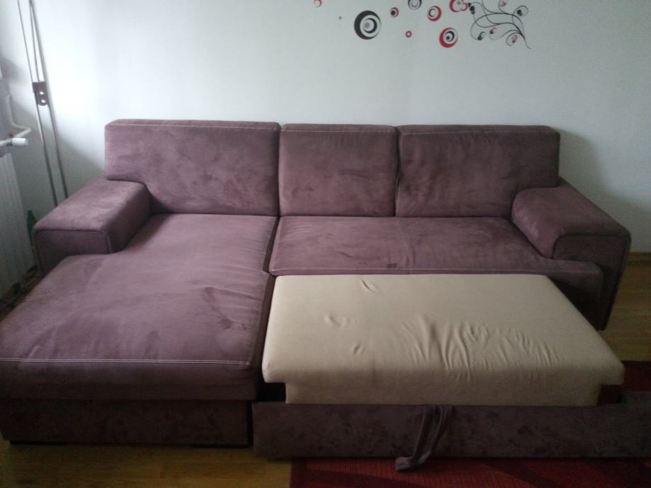 Prodajem kutnu garnituru LOTUS tango smeđe boje. Ugodna za sjedenje (kao trosjed) i spavanje (veličina bračnog kreveta).