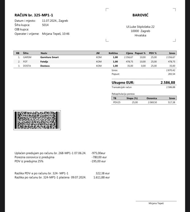 Prodajem kutnu garnituru Margalić (280x200), korištenu svega par mjeseci, bez ijednog oštećenja, praktički potpuno novu, kupljenu za 2350 eura (račun u prilogu fotografija). Razlog prodaje je da nam se stilski nije uklopilo u postojeći ambijent. Garnituru je moguće doći pogledati uživo bez obaveze.