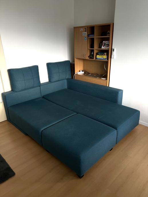Prodajem plavo tirkizni kauc sa slike. Primjer dimenzija i svih mogucih polozaja na ostalim slikama. Moze biti kutni kauc ili krevet. Stanje uredno, malo ostecenja no izvana urednog izgleda i bez udubljenja. Prodaja jer je visak.