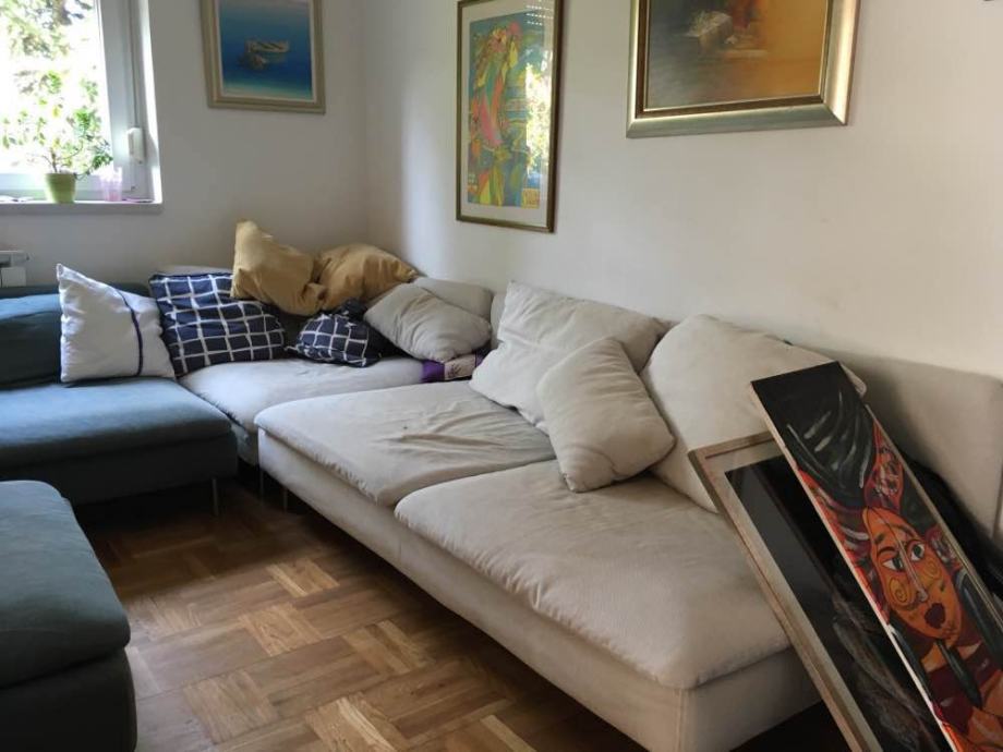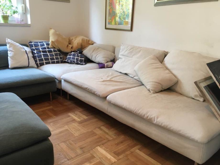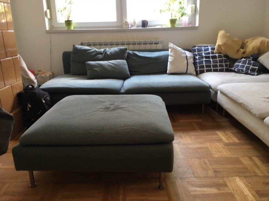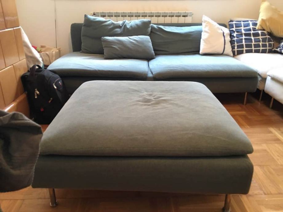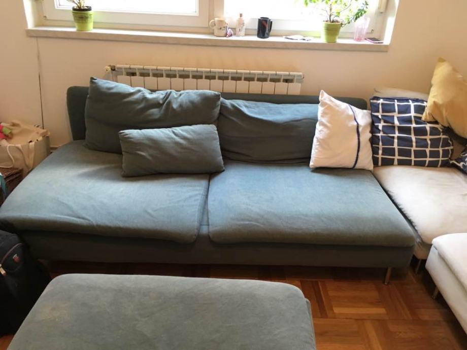Prodajemo navedene modularne sofe kupljene u Ikei prije 2 godine. Sastoje se od dva trosjeda, jednog kutnog elementa i taburea. Zahtjevaju čišćenje tkanine (perivo u veš mašini).