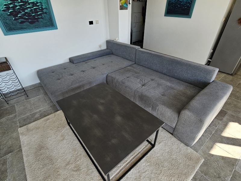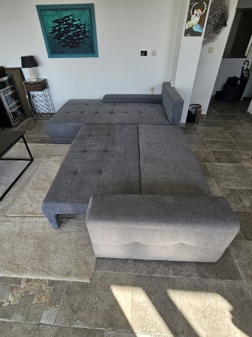 Kutna garnitura malo rabljena, bez oštećenja. Može se rastvoriti u ležaj 160x200cm. Ima spremište za posteljinu i jastuke.