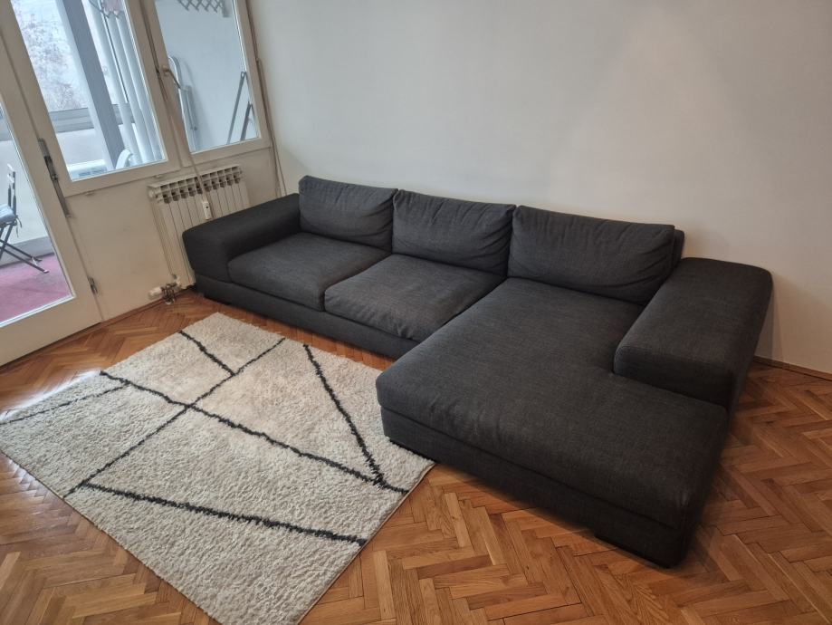 Prodaje se prostrana kutna garnitura u obliku slova L, idealna za veće dnevne boravke.