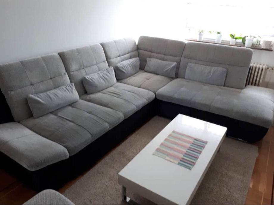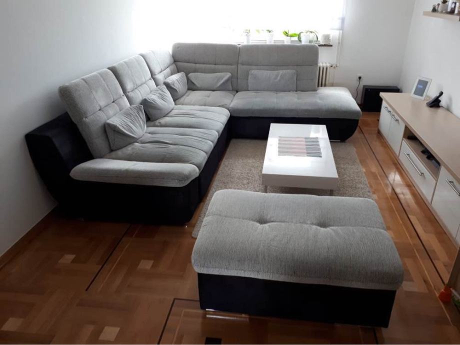 Prodajem kutnu garnituru staru 3 godine. Stanje 9/10. Uz kutnu garnituru ide i tabure za dvije osobe. Garnitura plaćena 11.990 kn.