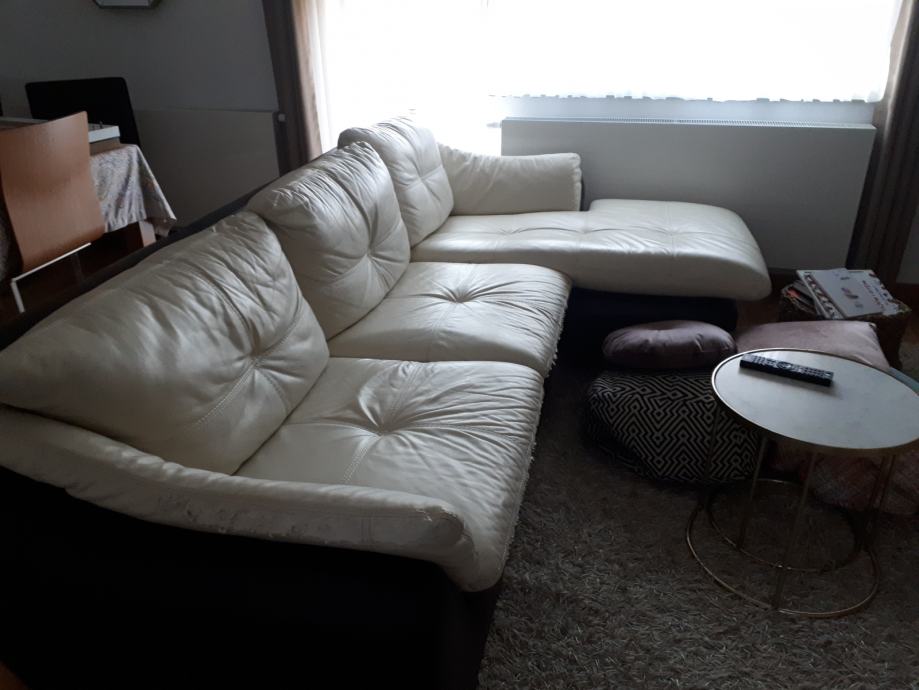 Kutna garnitura kupljena u Malagiću. Kombinacija prave koze (sjedište) i skaja sve ostalo. Mekana i preudobna za sjediti, jastuci puni i sve je skidivo na cif. Donji dio sjedišta se poceo guliti.