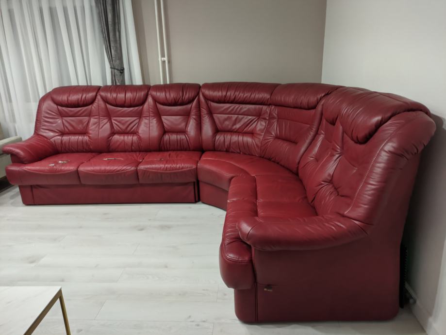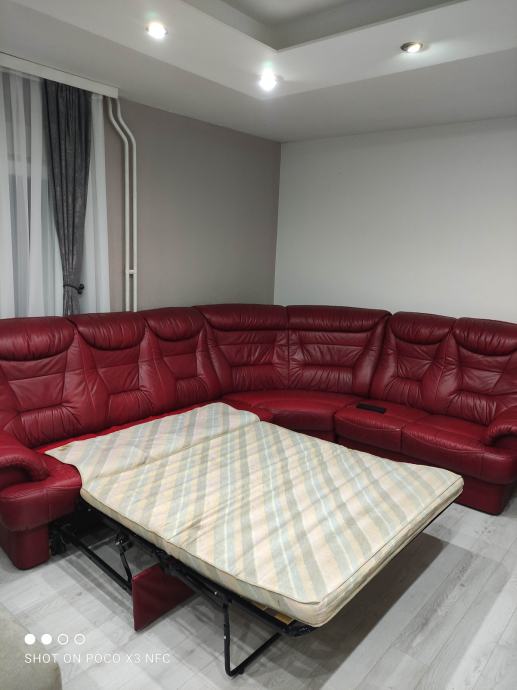 Premium kožna garnitura na razvlačenje s foteljom.