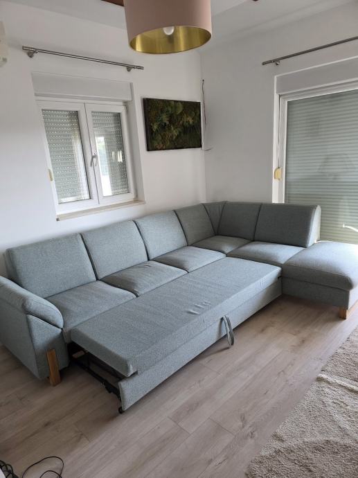 Moderna i kvalitetna kutna garnitura na razvlačenje dimenzije 220x320,kemijski očišćenja i očuvana, cijena 700e.mob. 098 187 0552