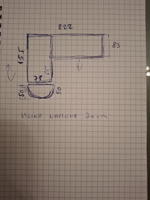 Dimenzije . Lijevi ležaj 155 cm plus tabure 55 cm Ukupno cca 200 cm.