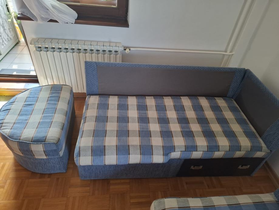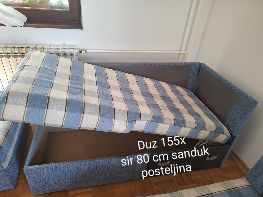 Ima sanduk za posteljinu i može se razvlačiti za spavanje 2 odrasle osobe .