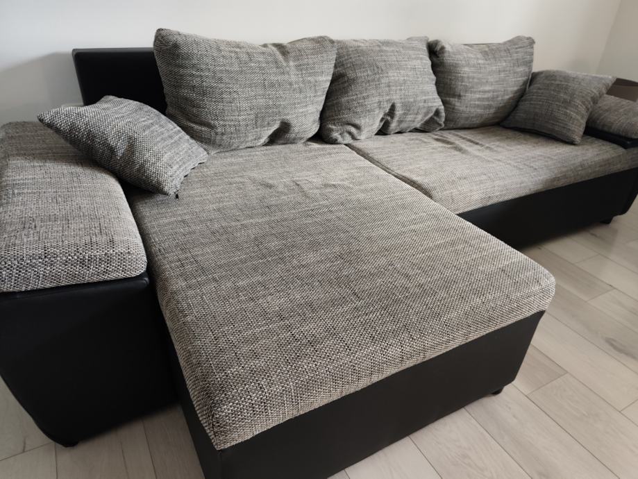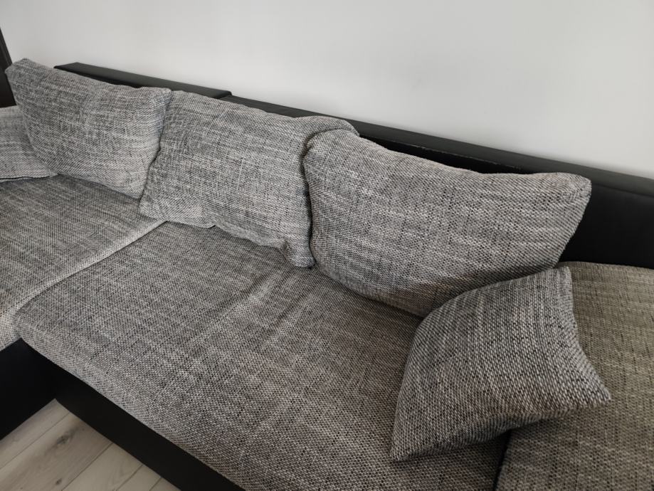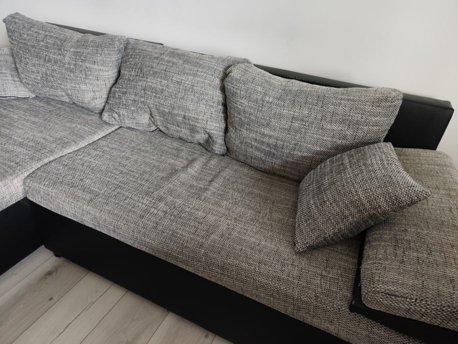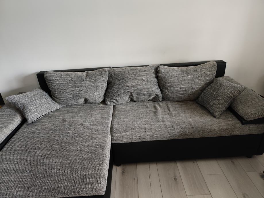 Prodajem kutnu garnituru.Kut se može mijenjati lijevo ili desno..Može se razvuči u krevet.Dimenzija garniture 260x100x78.Dužina kutnog dijela 140 cm.Garnitura je tamno siva s bijelim uzorkom,odlično stanje.Nije korištena za spavanje.