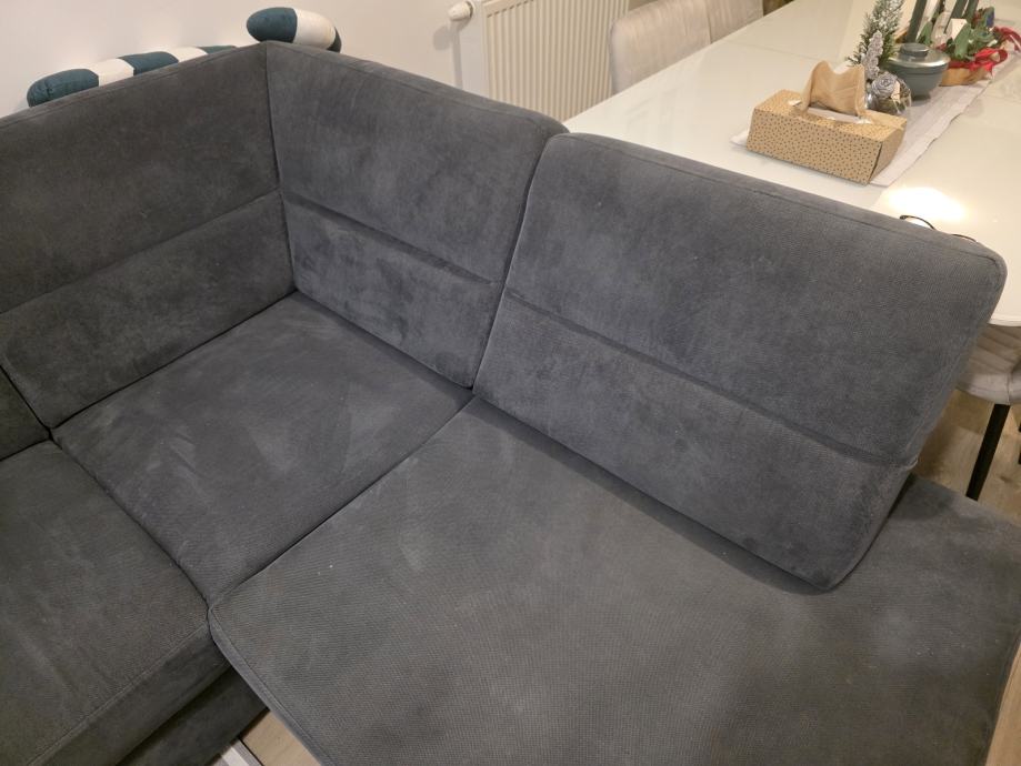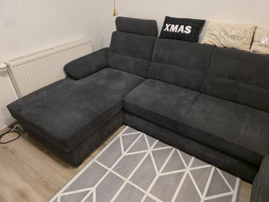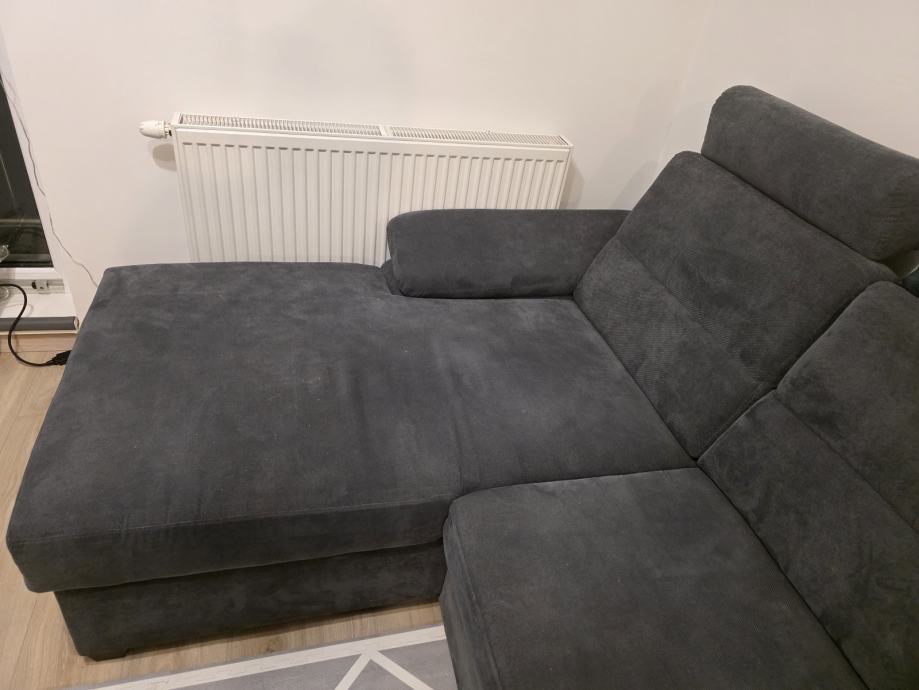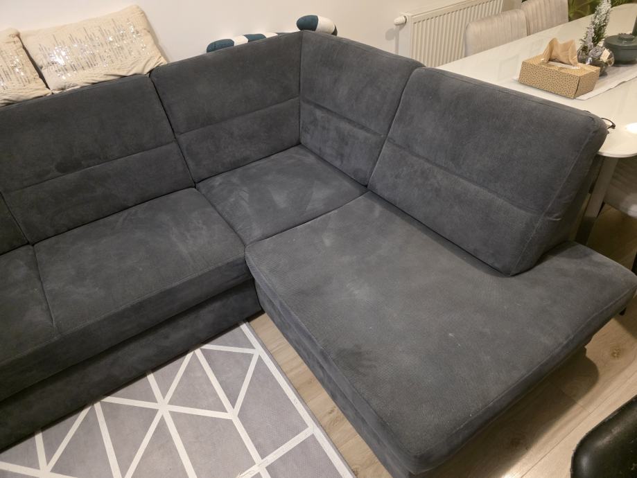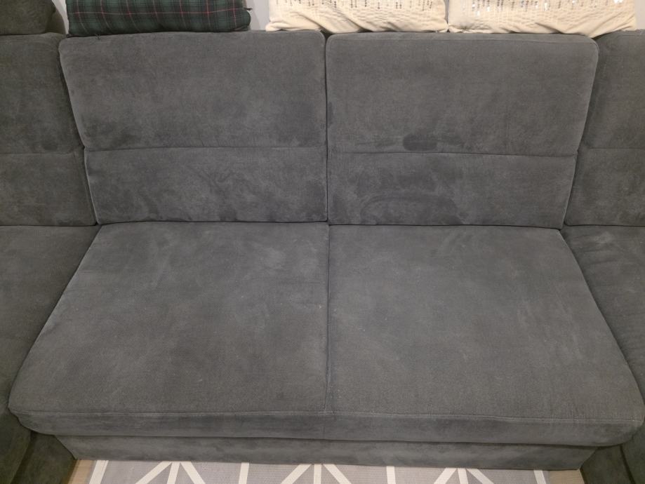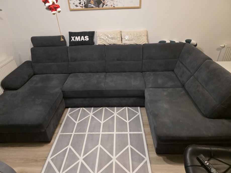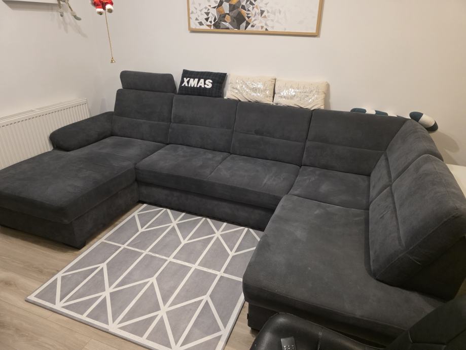 Na prodaju je kvalitetan U-oblika kauč sive boje, uredan i bez ikakvih oštećenja. Kauč je rastezljiv te pogodan za spavanje, a ima dva spremnika za posteljinu, što pruža dodatni prostor za pohranu.