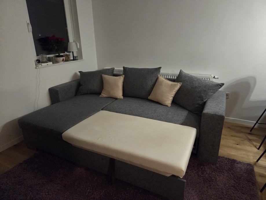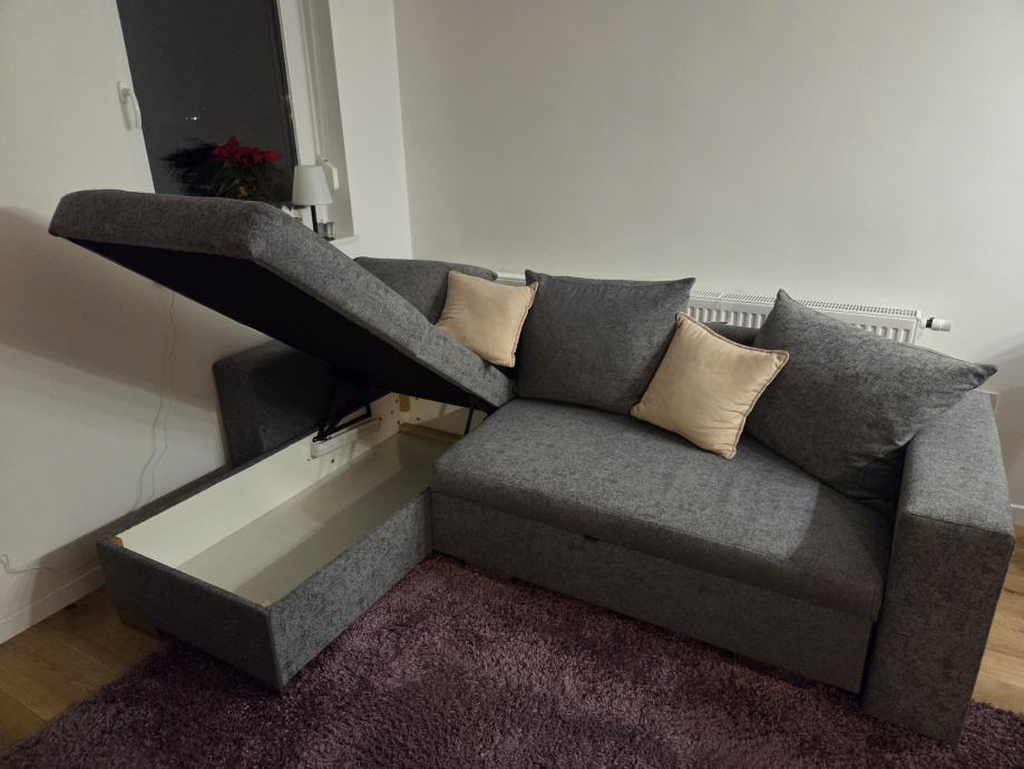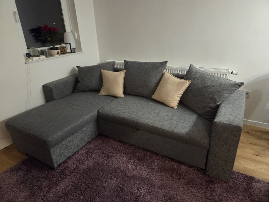 Prodajem kutnu garnituru dim. 244×155, lijeva /desna varijanta na rasklapanje i spremnikom. Kutna je u odličnom stanju, nanovo tapecirana i korištena u stanu bez kućnih ljubimaca. Preuzimanje u Velikoj Gorici.