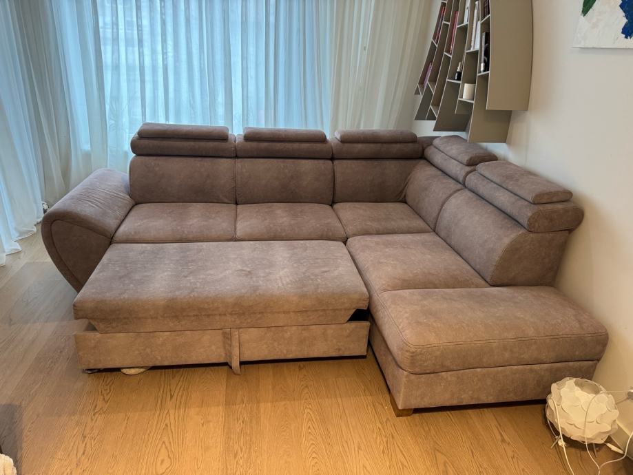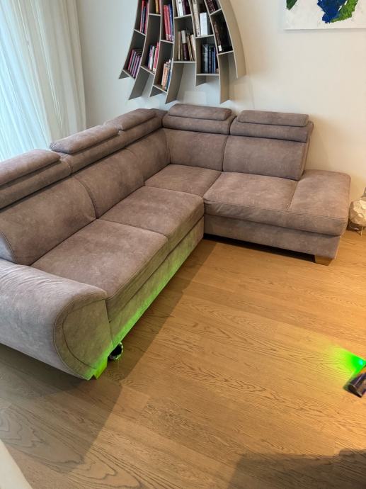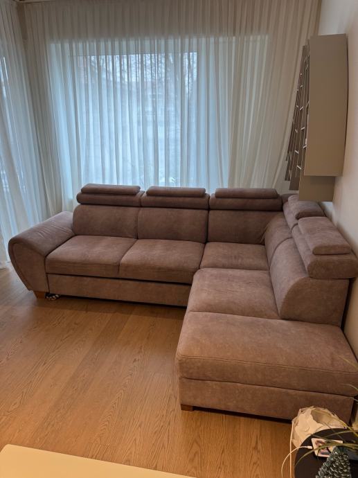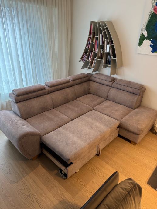 Kutna garnitura stara tri godine, kao nova, na razvlačenje, dimenzije oko 270x220 cm.