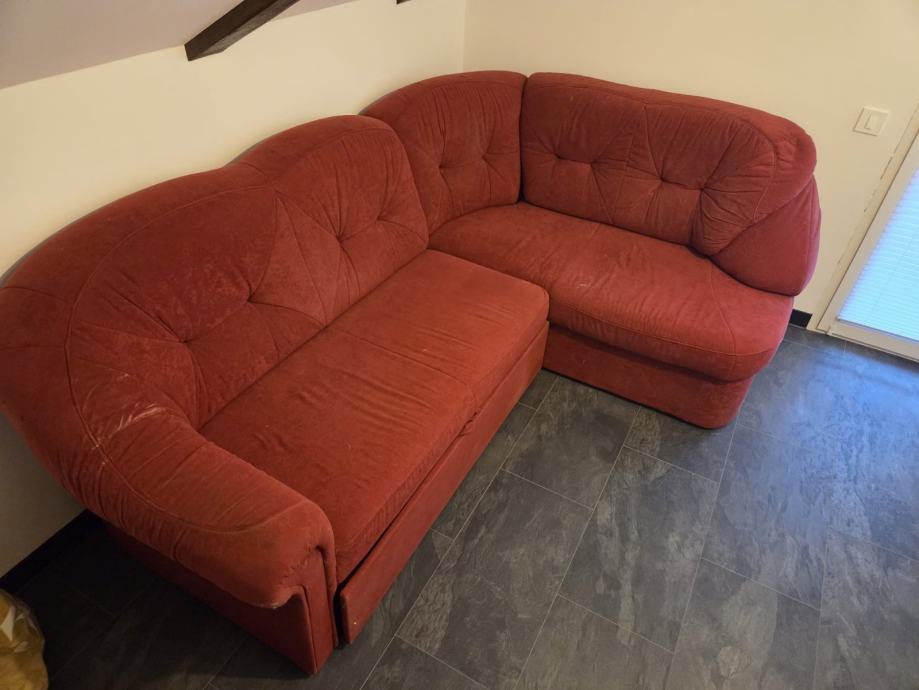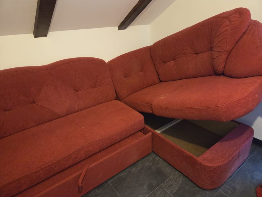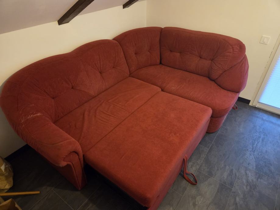 Dobro očuvana crvena kutna garnitura na razvlačenje.