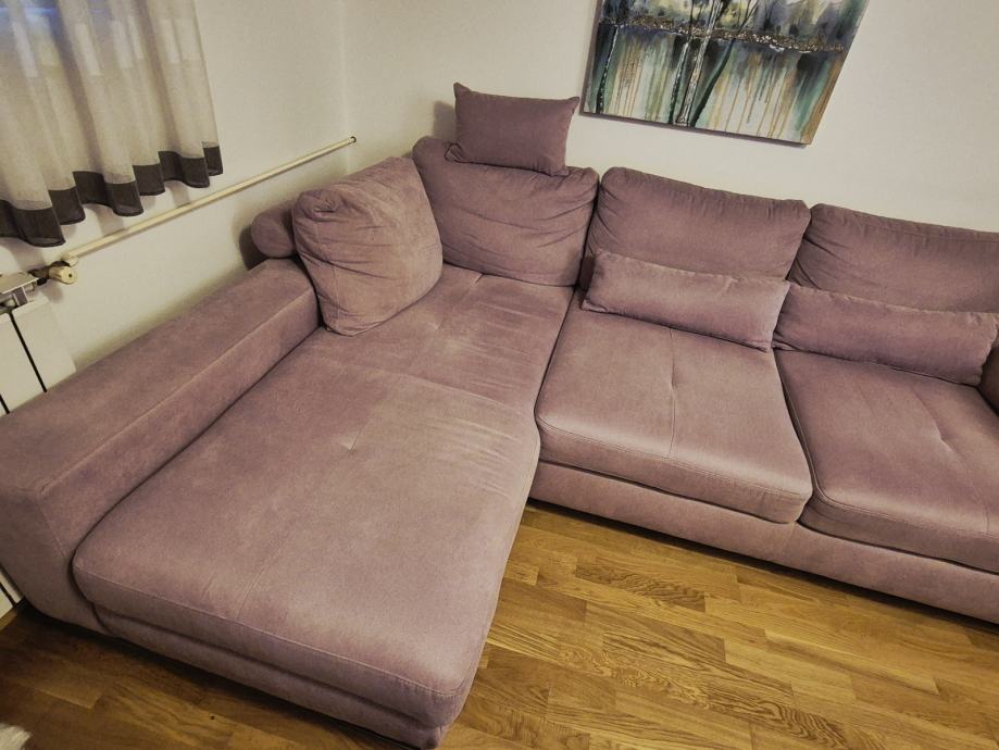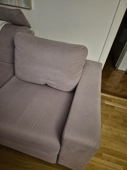 Prodaje se kutna garnitura, dimenzija 264x185 cm. Kemijski je ociscena prije par dana. Dubina sjedista je 75 cm. Izuzetno udobna. Naslon se moze podesiti i pribliziti za sjedenje