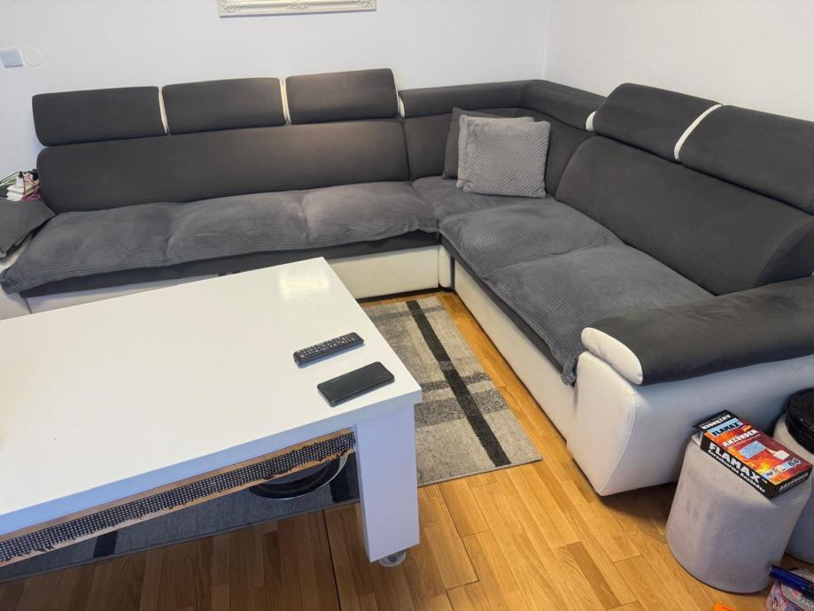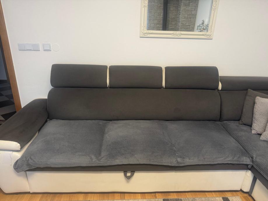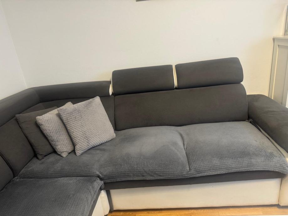 Prodajem očuvanu kutnu garnituru, sivu sa podesivim naslonima za glavu,kraca strana se izvlači