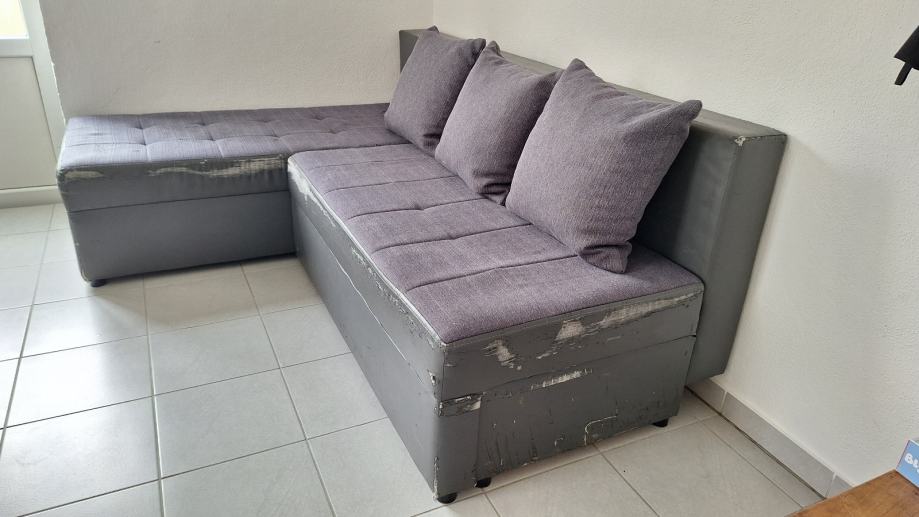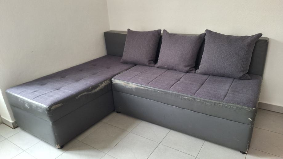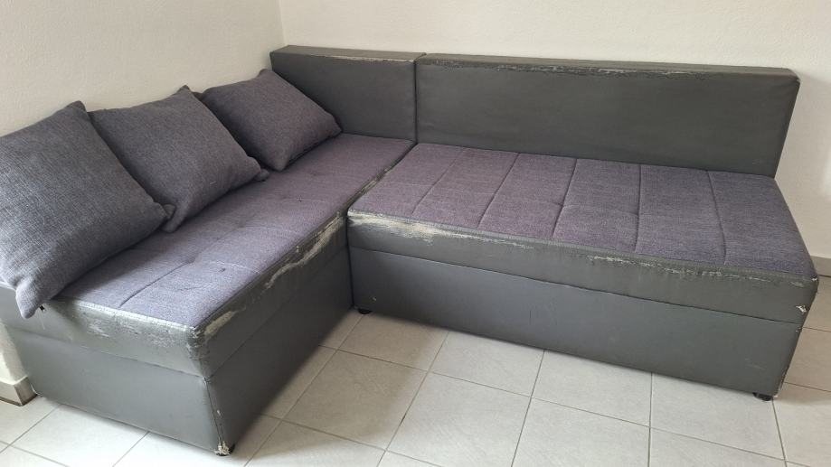 Kutna garnitura lijeva ili desna(može se okretati),platno i konstrukcija je ispravno a ovaj dio od eko kože je u stanju vidljivom na slikama,može se i razvući u ležaj.