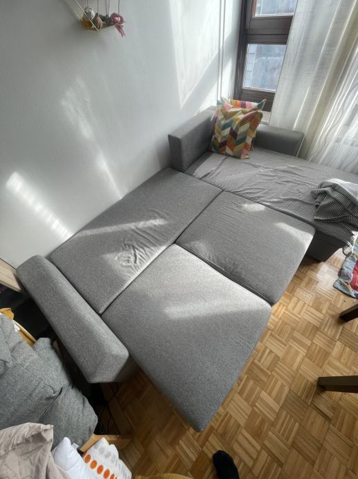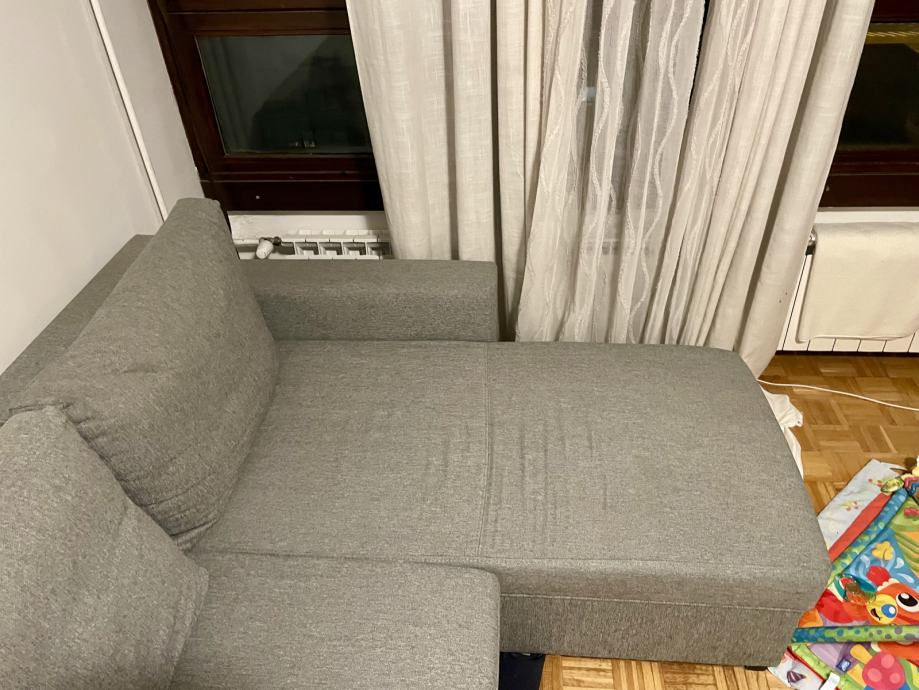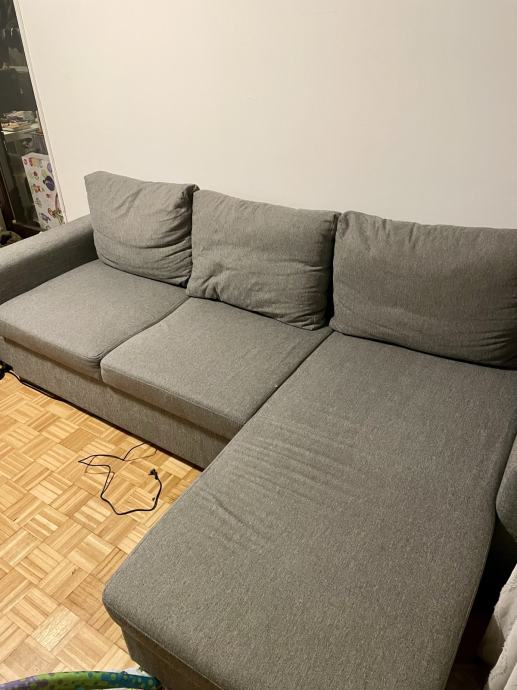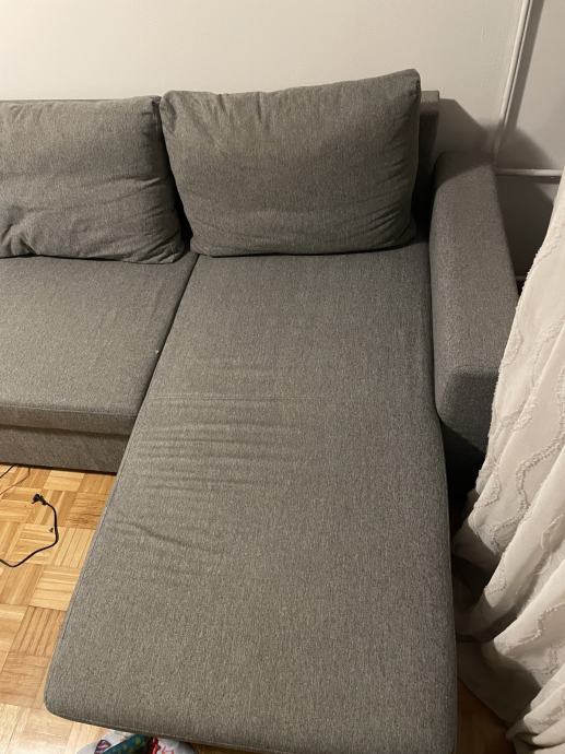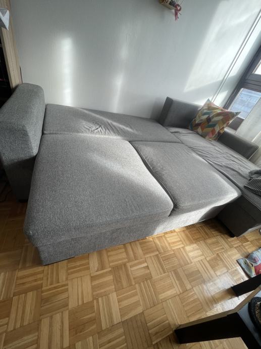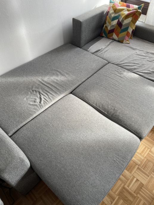 Prodajem očuvanu garnituru koja ima mogućnost rastezanja i spavanja na istoj za dvije osobe. Kupljena u Prima namještaju pred 3 godine. Razlog prodaje: preseljenje gdje nam nije potrebna ova garnitura. Prva vlasnica. Uz garnituru dolaze dva zelena jastučića