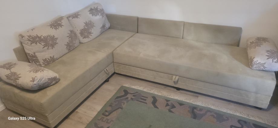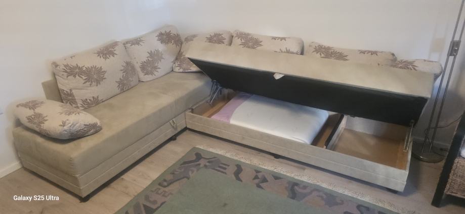 Prodajem kutnu garnituru koja se sastoji od dva ista dijela dužine 200 cm tako da se može kombinirati na različite načine.Svaki ležaj ima spremište te je garnitura u jako dobrom stanju.